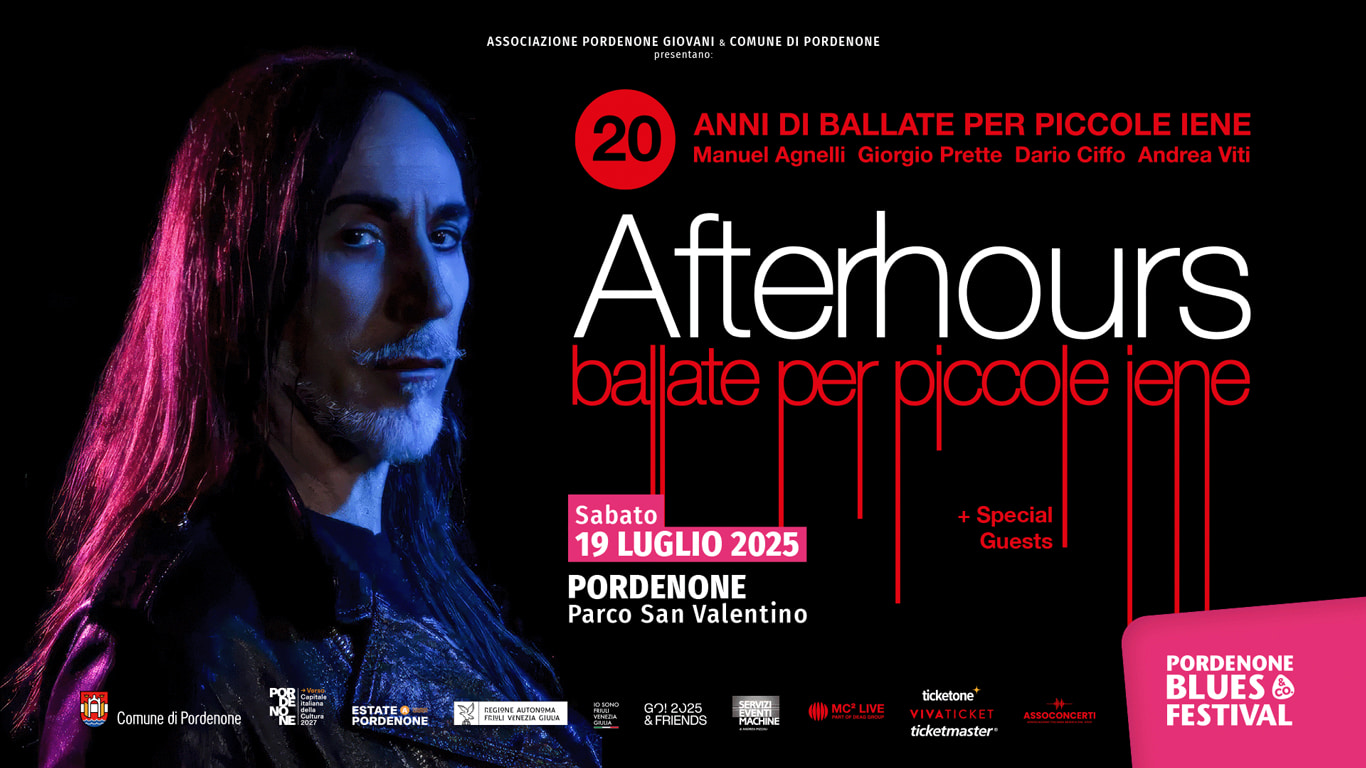 Gli Afterhours saranno sul palco del 34° Pordenone Blues Festival sabato 19 luglio con la formazione storica per festeggiare i 20 anni dalla prima pubblicazione di “Ballate per Piccole Iene”, uno degli album più iconici e rappresentativi della musica italiana che sarà ristampato in primavera in un’edizione speciale in uscita per USM/ Universal Music Italia.