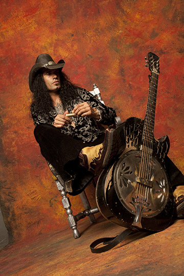 Un artista in grado di rompere qualunque barriera. Chitarrista, cantante e compositore Eric Sardinas è conosciuto per la grande intensità delle sue esibizioni live. Sin dalla fine degli anni ’90 ha cavalcato i palchi di tutto il mondo incrementando esponenzialmente, con il passare degli anni, il suo pubblico. I suoi 6 album evidenziano il suo distintivo stile che musicalmente varca i confini del rock e del blues, a cui nessuno è più indifferente. Non inganni il look aggressivo e i tatoos sulla pelle, Sardinas è un autentico bluesman. Il giovane chitarrista californiano suona esclusivamente una Dobro elettrificata e customizzata, con lo slide tra le dita, con un’abilità e padronanza tecnica straordinarie e con un sound dirompente. Ha definito così uno suo stile chitarristico personale ed incisivo dove riesce a coniugare la tradizione del Delta blues con il potente e moderno impatto sonoro del rock.
