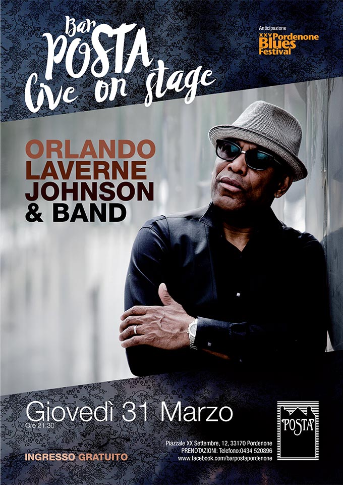 Giovedì 31 Marzo Bar Posta – Pordenone ore 21.30 Orlando Laverne Johnson & Band – “LIVE ON STAGE” Inizio ore 19.00 con il Dj Set…