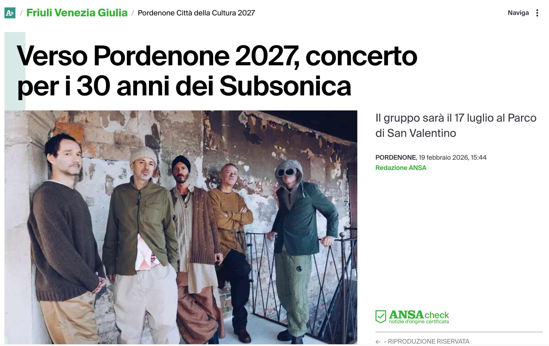 «Verso Pordenone 2027, concerto per i 30 anni dei Subsonica»