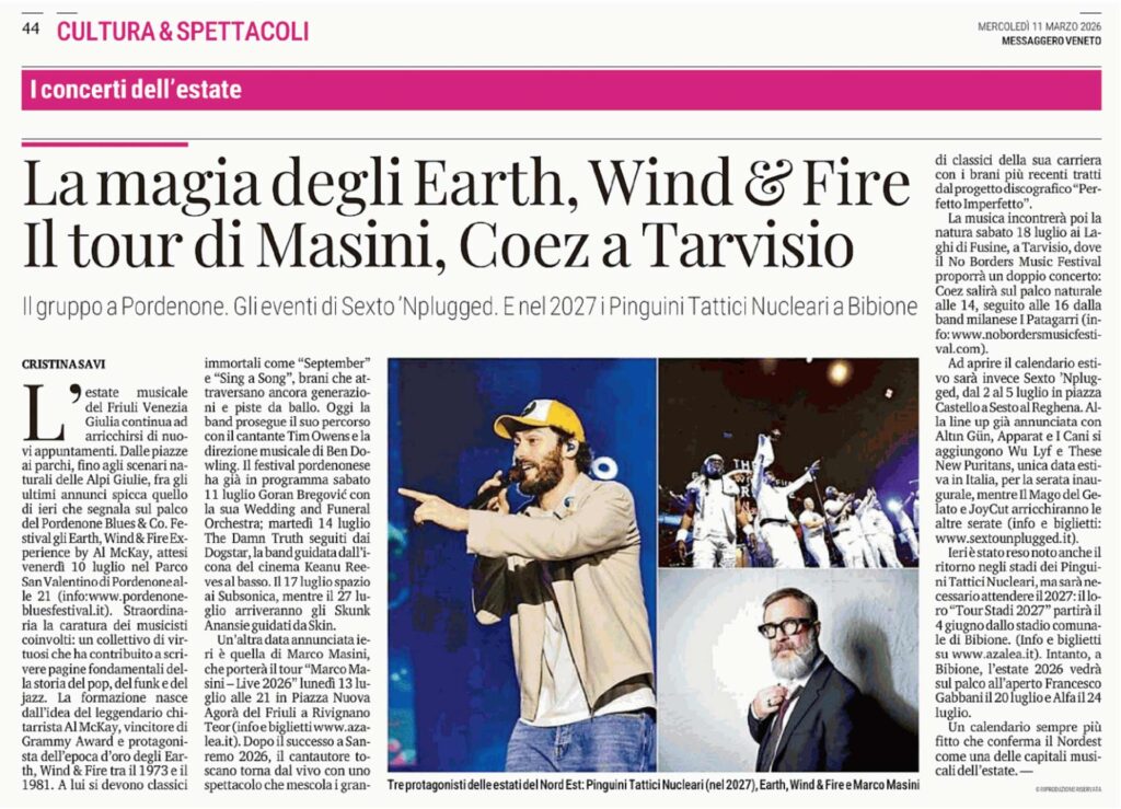 «Earth, Wind & Fire Experience by Al McKay arricchiscono il cartellone del Pordenone Blues Festival dove si esibiranno a luglio 2026»
