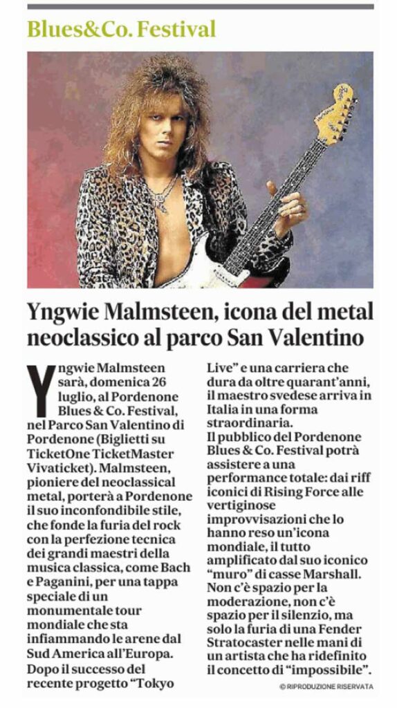 «Yngwie Malmsteen ospite del Pordenone Blues & Co Festival»