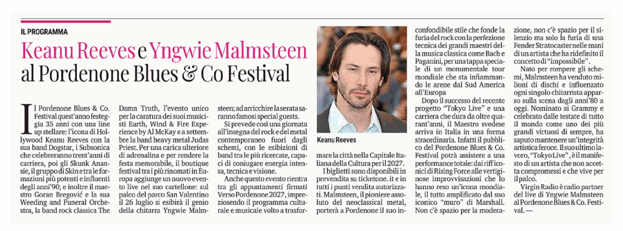 «Keanu Reeves e Yngwie Malmsteen al Pordenone Blues & Co Festival»