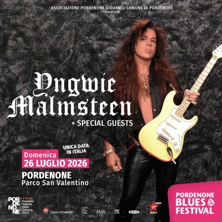 Il leggendario chitarrista Yngwie Malmsteen live domenica 26 luglio 2026 al Pordenone Blues & Co. Festival per l’unica data italiana del suo tour mondiale